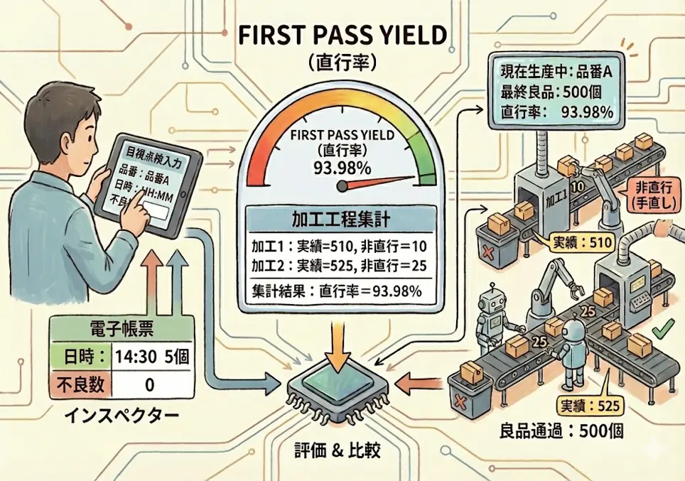 本記事では、このリアルタイム分析の具体的な活用法を、特に重要な指標である「直行率」と「良品率」を例に解説します。